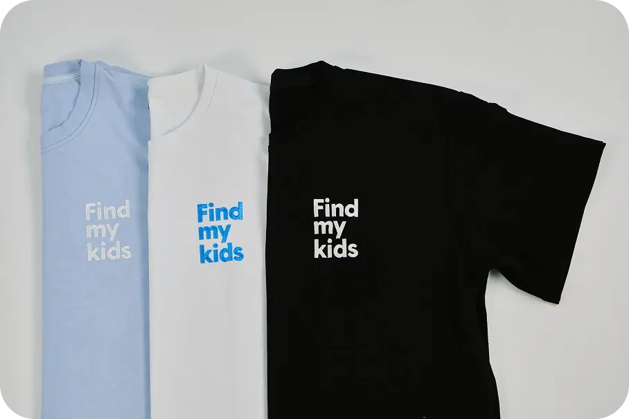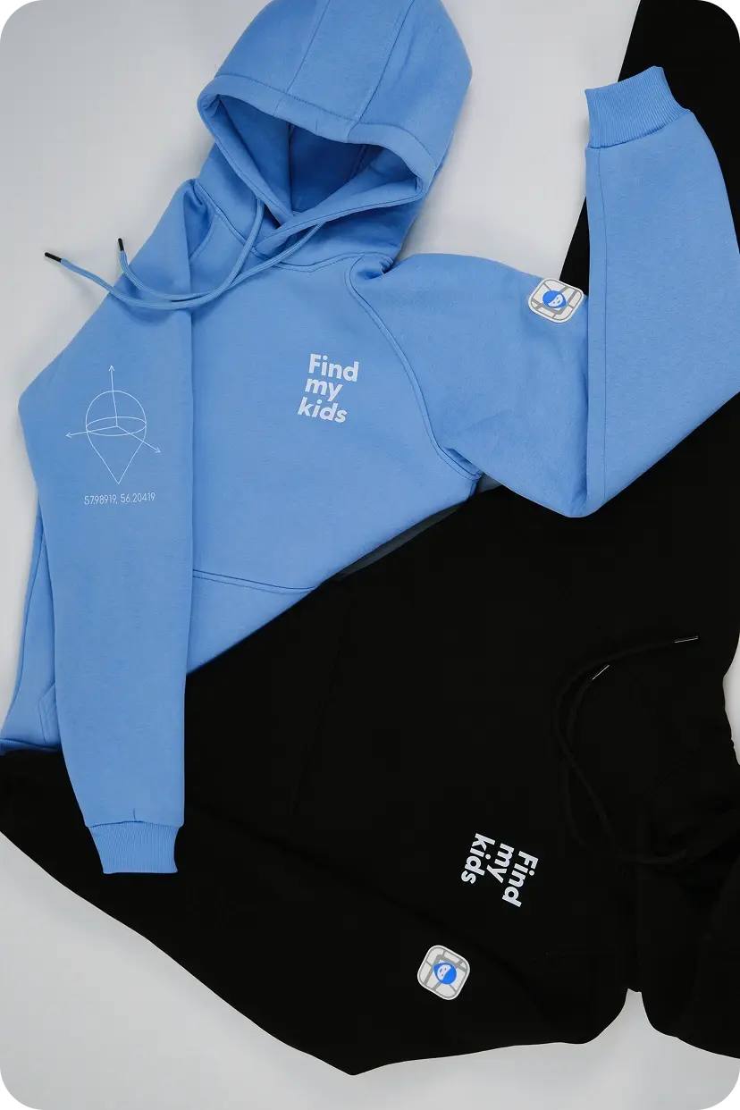 Find my kids — компания, которая занимается разработкой приложения «Где мои дети». Совместно с FMK мы создали мерч в фирменных цветах компании: нежно голубой, черный и белый.