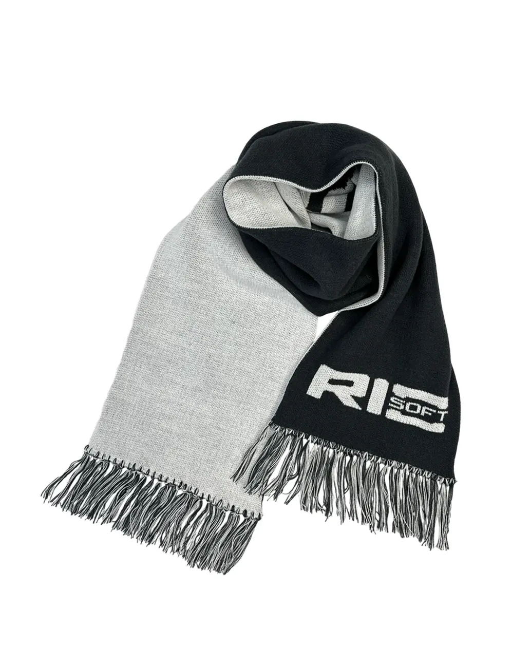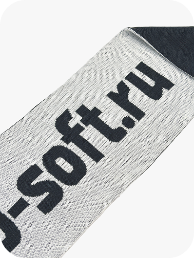 Новогодними подарками для сотрудников стали уютные шарфы, которые мы связали в фирменном сером цвете. Дополнили шарф длинными мягкими кистями, а за основу взяли шерстяные нити с добавлением акрила. Вшили логотип компании с одной стороны, сайт с другой.