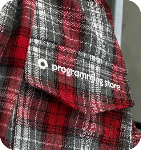 Мерч для сотрудников Programming Store: для подарков ко дню рождения. Для этого мы выбрали вторую после худи любимую вещь в гардеробе программиста — рубашку из клетчатой фланели.